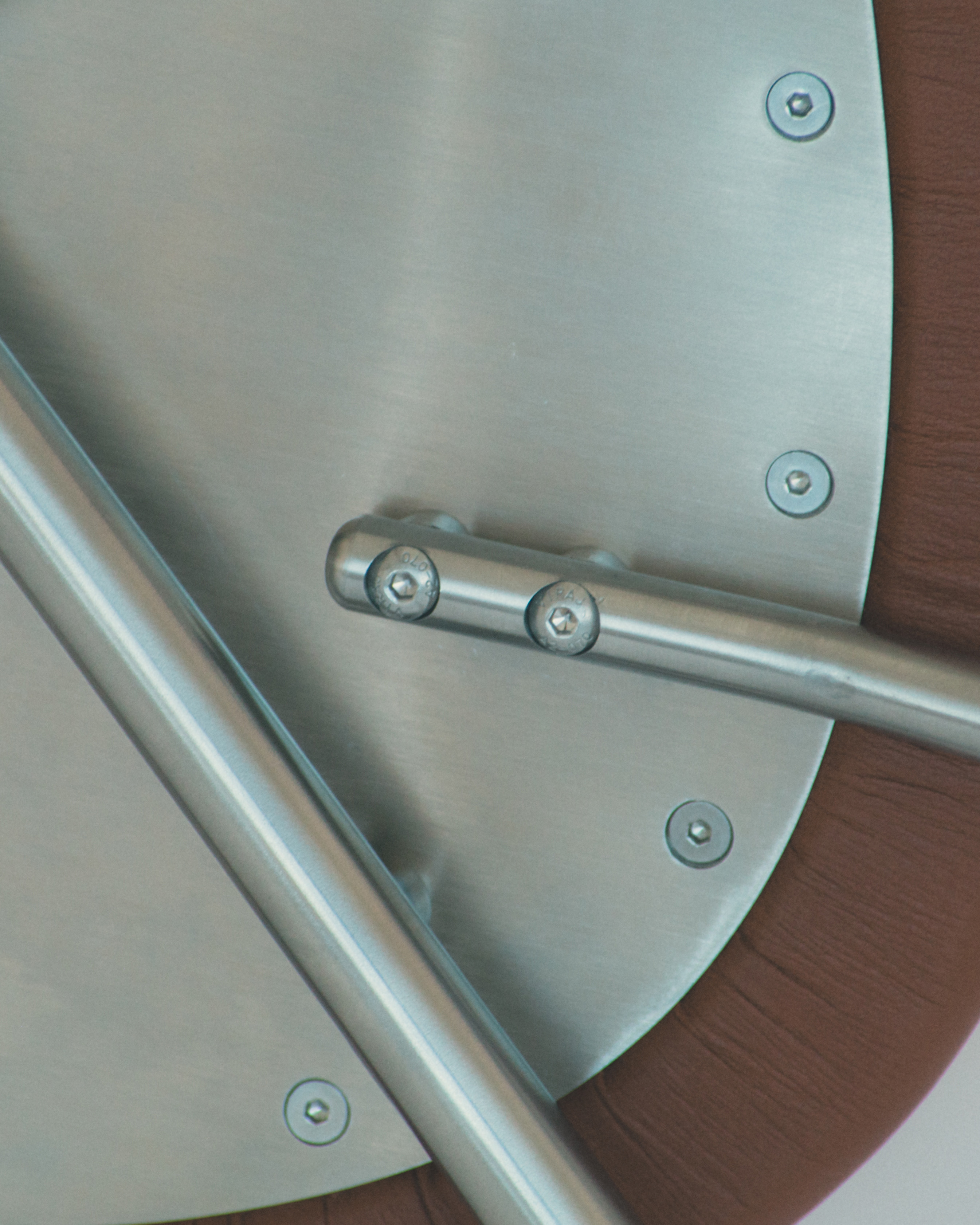 Materialer: Rustfrit stål, cognac læder, olieret egetræ