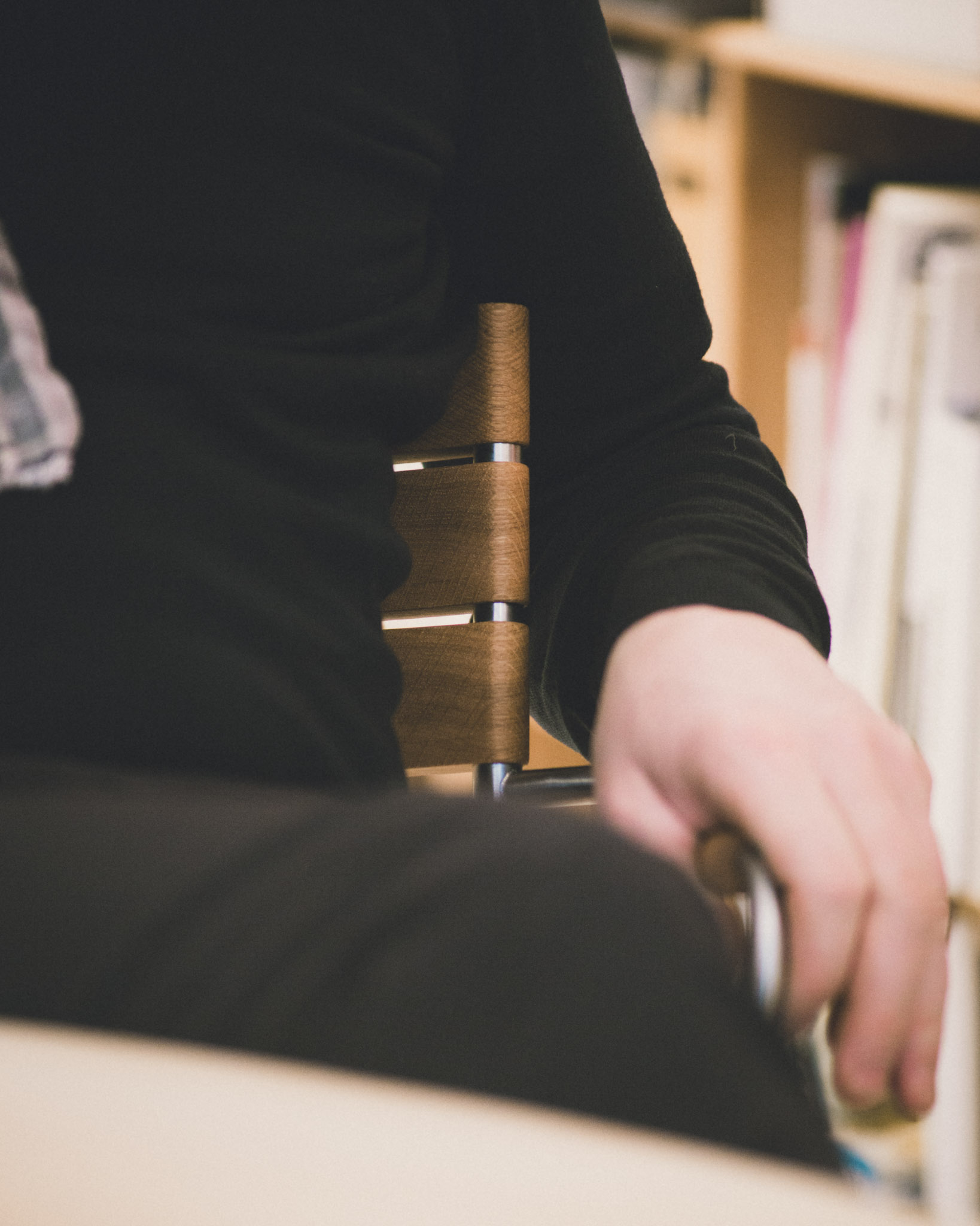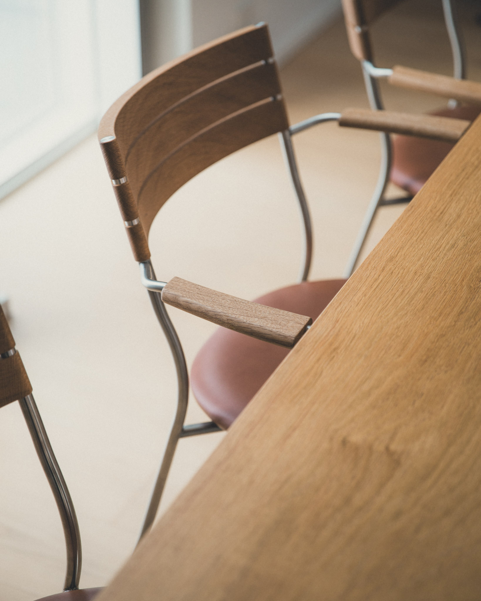 En videreudvikling af BEHAG, med armlæn og øget bevægelighed. En spisebordsstol, man har lyst til at blive siddende i.